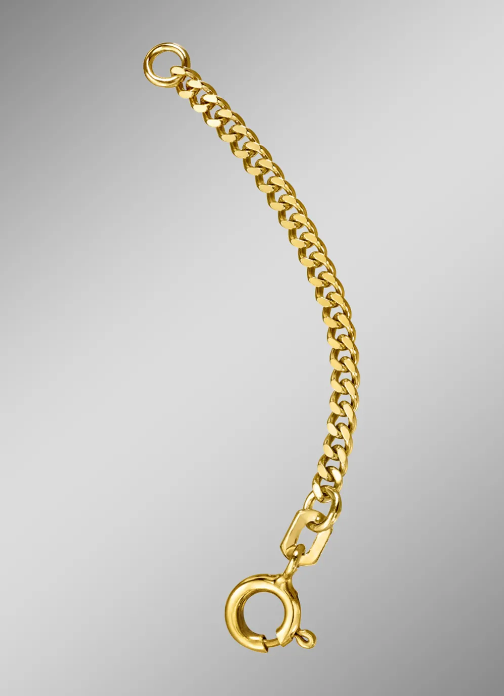 Schöne 60-er Panzer-Verlängerungskette aus Gold 585/- fein oder aus Gold 333/- fein. Das Accessoire mit Federring und Öse ist in 2 Längen erhältlich: