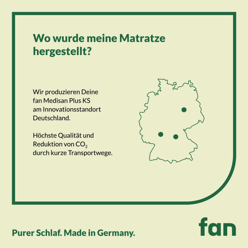 Diese 7-Zonen-Kaltschaumkern-Matratze „fan Medisan Plus KS“ ist der TESTSIEGER „Stiftung Warentest“ mit Testurteil GUT (2,2), gemeinsam mit zwei weiteren Wettbewerbsprodukten, in der Heftausgabe 03/2025, die zusammenfassend mit „Auf fan liegen alle gut“ ausgezeichnet wurde! Die Testsieger-Matratze überzeugt durch eine sehr gute Körperunterstützung dank dem flexiblen Kaltschaumkern, der mit speziellen Einschnitten im Schulterbereich und zusätzlich mit Belüftungskanälen, für eine verbesserte Luftzirkulation und ein angenehmes Schlafklima, ausgestattet ist. Sorgenlosen, rückenschonenden Schlaf für Ihr Wohlbefinden ist auch durch die funktionale Entlastung im Schulterbereich gegeben, ideal für Seitenschläfer. Der anschmiegsame, hautsympathische und elastische Doppeljersey-Bezug (100% Polyester), versteppt mit bauschiger Klimafaser (100% Polyester), kann zu einem angenehm trockenen Schlafklima zu jeder Jahreszeit beitragen. Beide Liegeseiten bieten die gleiche Stützkraft, sodass die Matratze gedreht und gewendet werden kann. Leichte Handhabung durch das geringe Gewicht und mit 4 Griffschlaufen als praktische Wendehilfe. Der Bezug bietet einen hohen Hygienekomfort, denn er ist mittels 4-Seiten-Reißverschluss abnehmbar, waschbar bis 95 °C und trocknergeeignet. Höhe: ca. 19 cm