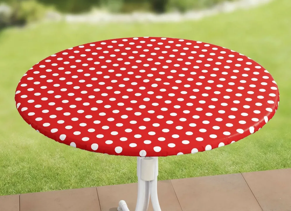 Abwaschbare Spann-Tischdecke in Größe 150 (ø 70–86 cm) und in Rot.