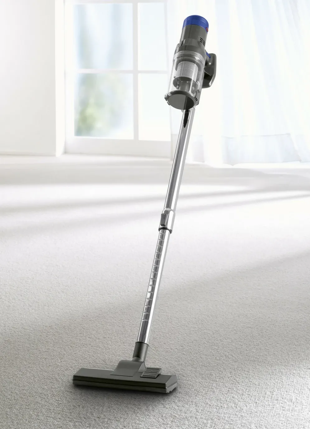 Leistungsstarker 22,2-V-Lithium-Ionen-Akku, für eine Betriebsdauer bis zu 35 Minuten. Batteriestandanzeige. 800-ml-Staubbehälter. Inkl. umschaltbarer Bodendüse für Teppiche und Hartböden. Inkl. 2-in-1 Bürstendüse zur schonenden Entfernung von grobem und feinem Schmutz und Tierhaaren, lange Fugendüse für schwer zugängliche Stellen wie Ecken, Fußleisten, Tastaturen uvm. Mit Wandhalterung.