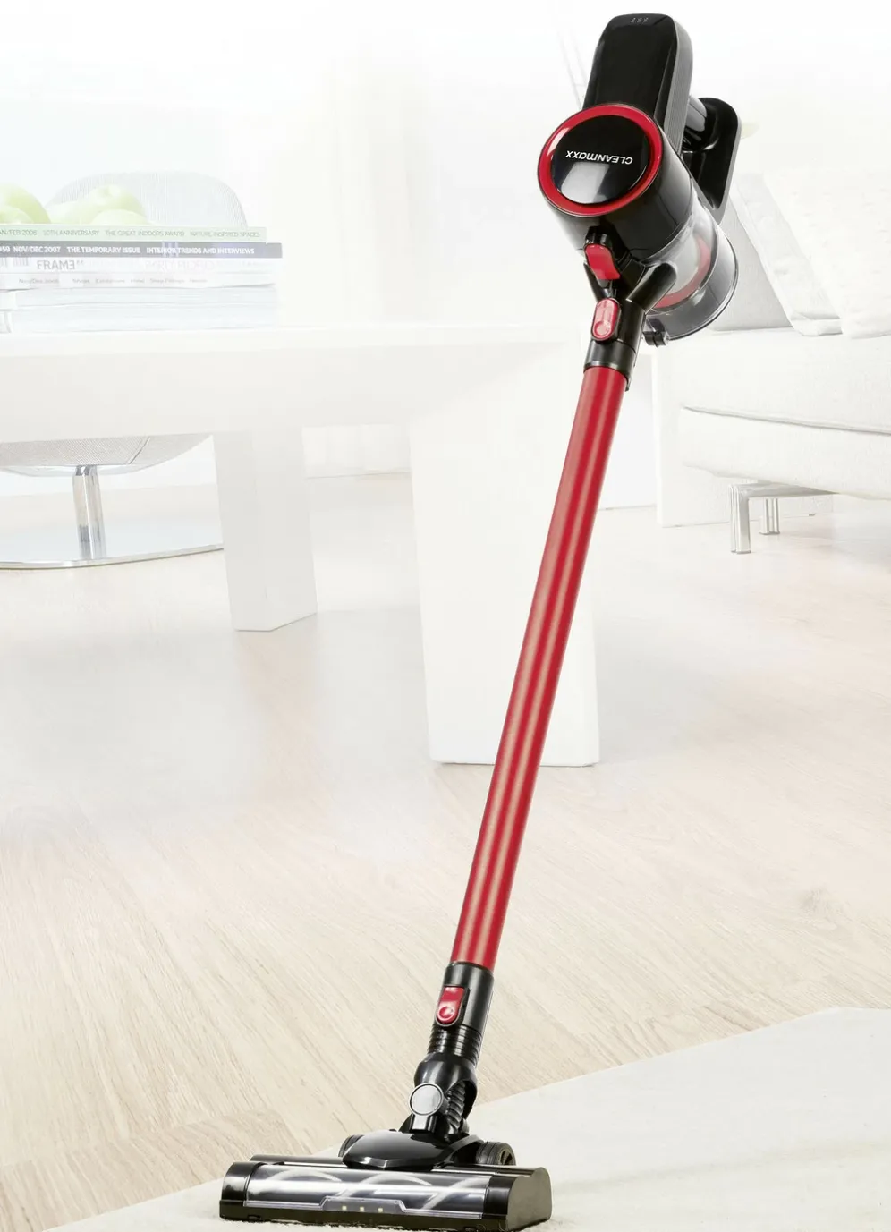 Akku-Zyklon-Staubsauger – der leiseste seiner Klasse in Rot-Schwarz.