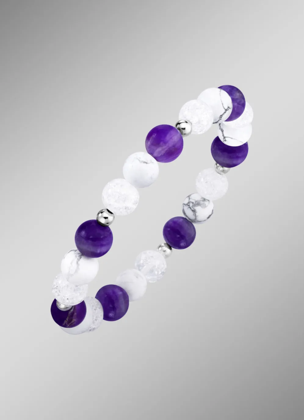 Dieses beeindruckende Energiearmband vereint die Kraft der Natur in einem außergewöhnlichen Design. Gefertigt aus echtem Amethyst, funkelndem Crash Kristall und echtem Howlith, strahlen die 8–9 mm großen Kugeln eine faszinierende Schönheit und positive Energie aus. Jedes Stück ist ein Unikat, das Individualität und Harmonie symbolisiert.