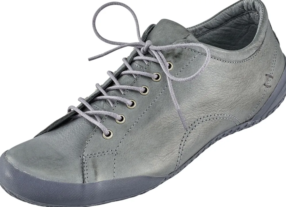 Schnürschuhe aus schattiertem Rind-Nappaleder mit grauer Einfassung: Lederfutter, herausnehmbare Lederdecksohle, leichte TPR-Laufsohle sowie 10 mm Keilabsatz
