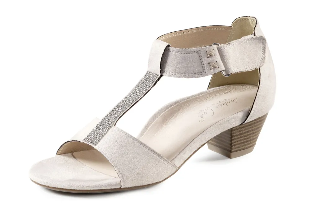 Andrea Conti, schicke Damen-Sandaletten, mit Klettspange in Hellbeige und in Größe 36.