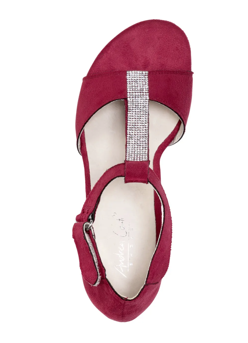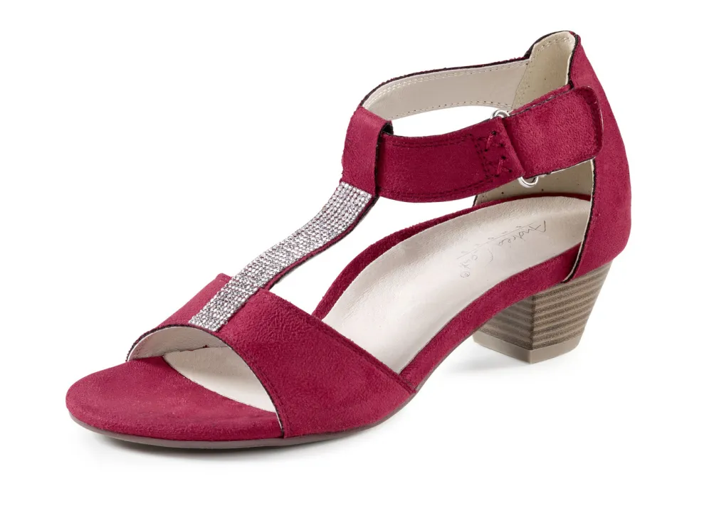 Sandaletten aus Synthetik mit funkelnden Glitzersteinchen: verstellbare Klettspange, Futter, Lederdecksohle mit Gelenkstütze, TPR-Laufsohle sowie 40 mm Absatz