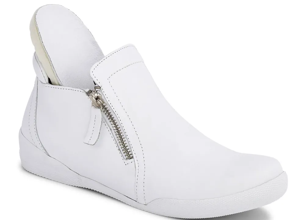 Boots aus weichem Rind-Nappaleder: zwei seitlich eingesetzte Reißverschlüsse, Lederfutter, herausnehmbare Lederdecksohle, superleichte TPR-Riffelsohle, 10 mm Keilabsatz. Schafthöhe ca. 7 cm