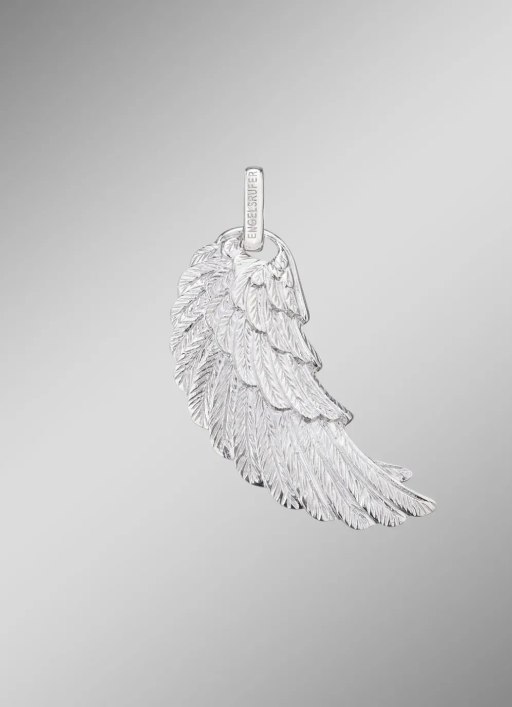 Der glänzende Engelsflügel zeigt seine Einzelheiten in der Ausarbeitung seiner Engelsfedern. Das detailverliebte Schmuckstück ist eine zauberhafte Ergänzung zu Ihrem Engelsrufer, verfehlt aber auch einzeln getragen nicht seine Wirkung.