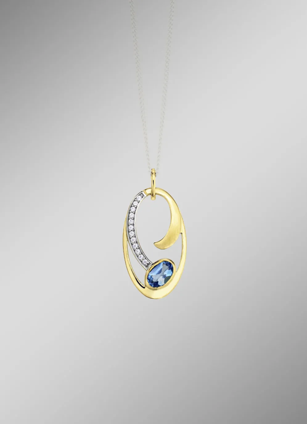 Anhänger mit Blautopas und Zirkonia in der Legierung Gold 375/- fein.