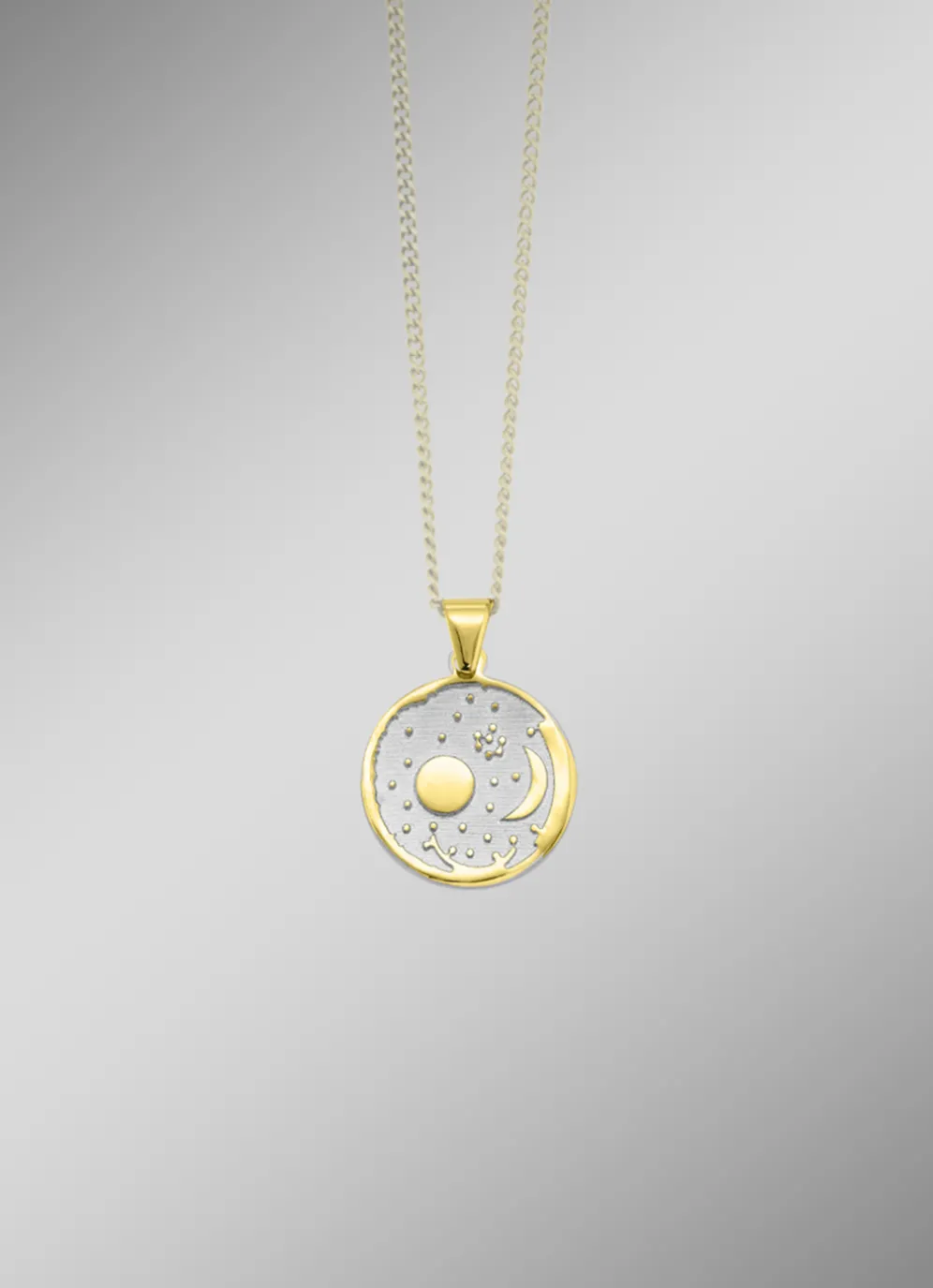 Anhänger mit Himmelsscheibe von Nebra in Bicolor in der Legierung Gold 585/- fein.