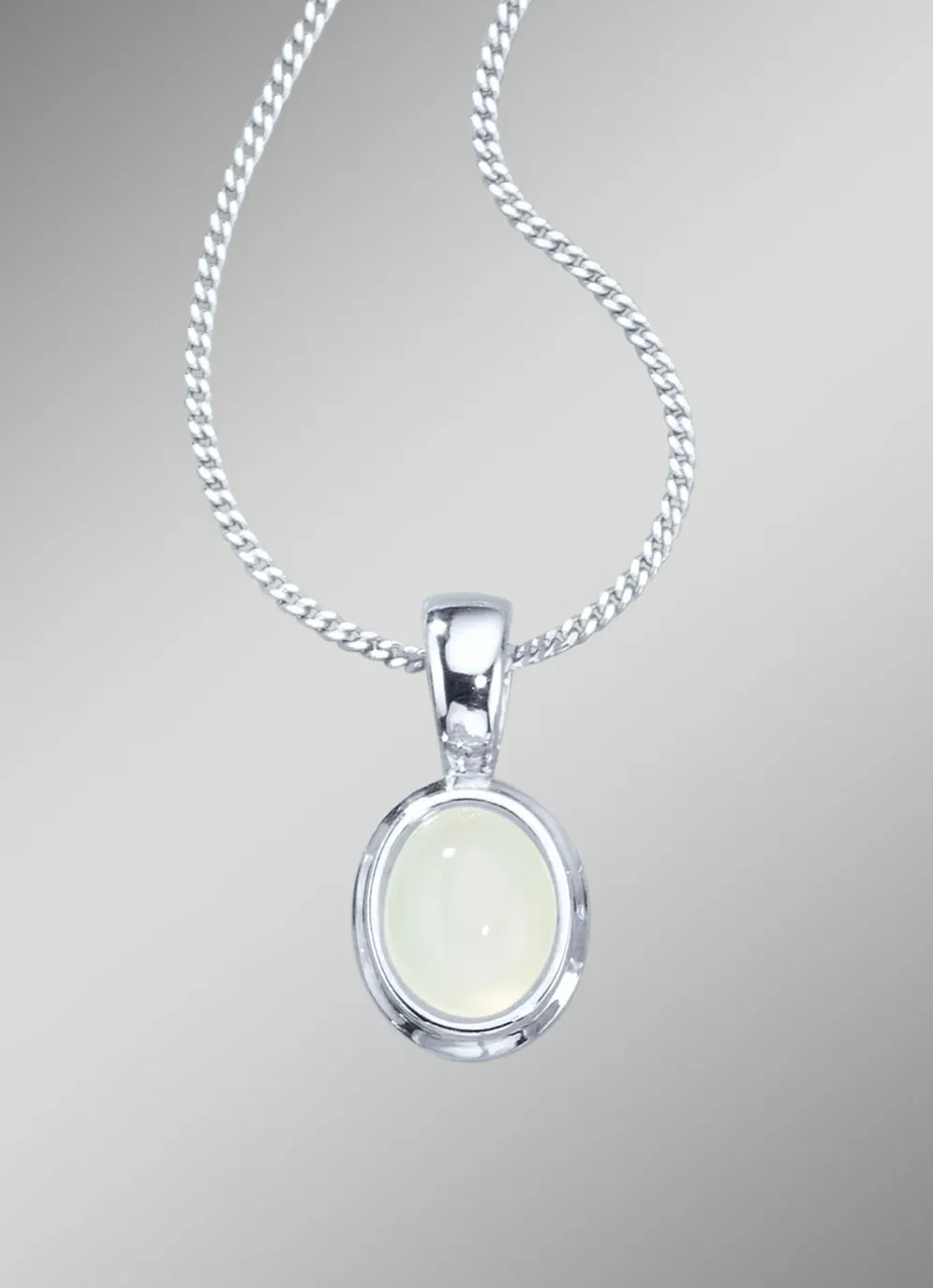 Anhänger mit Panzerkette und echtem, weißen Mondstein in der Legierung Silber 925/- fein.