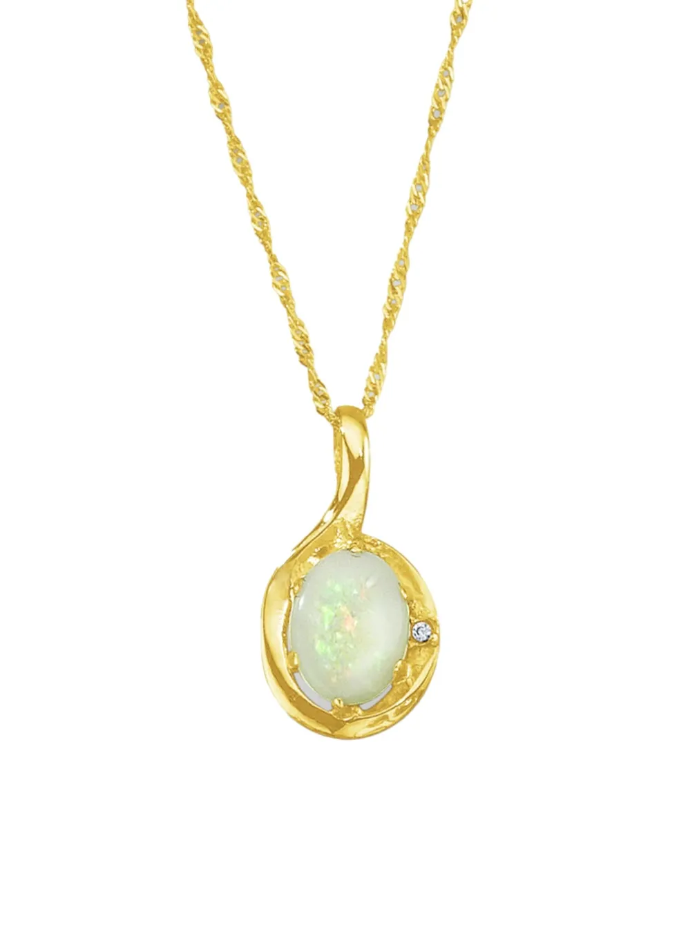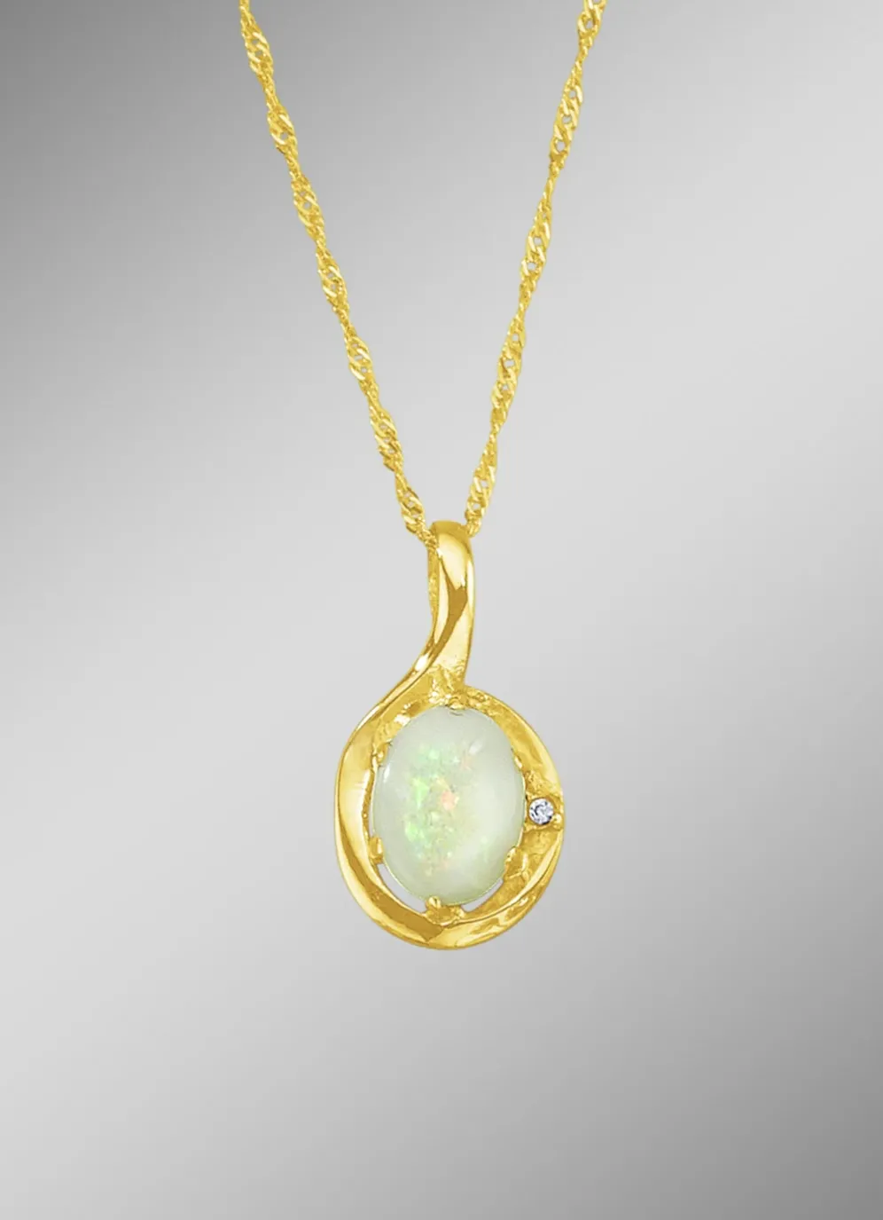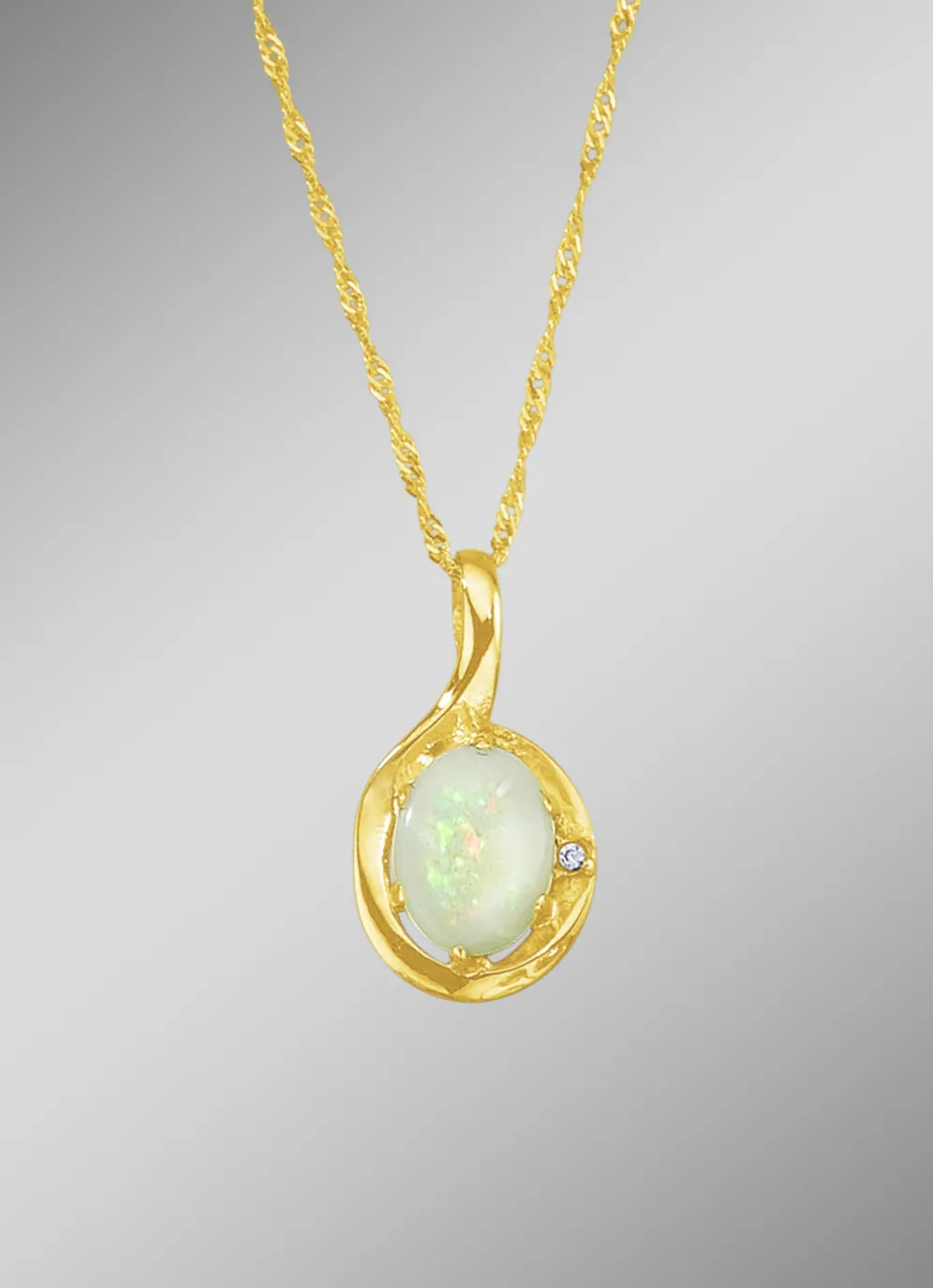 Lassen Sie sich verzaubern von diesem Anhänger mit echtem, ovalem Opal in einer Stotzenfassung, die mit synth. Zirkonia verziert ist. Der 17 mm lange Halsschmuck ist mit einer festen Öse gearbeitet.
