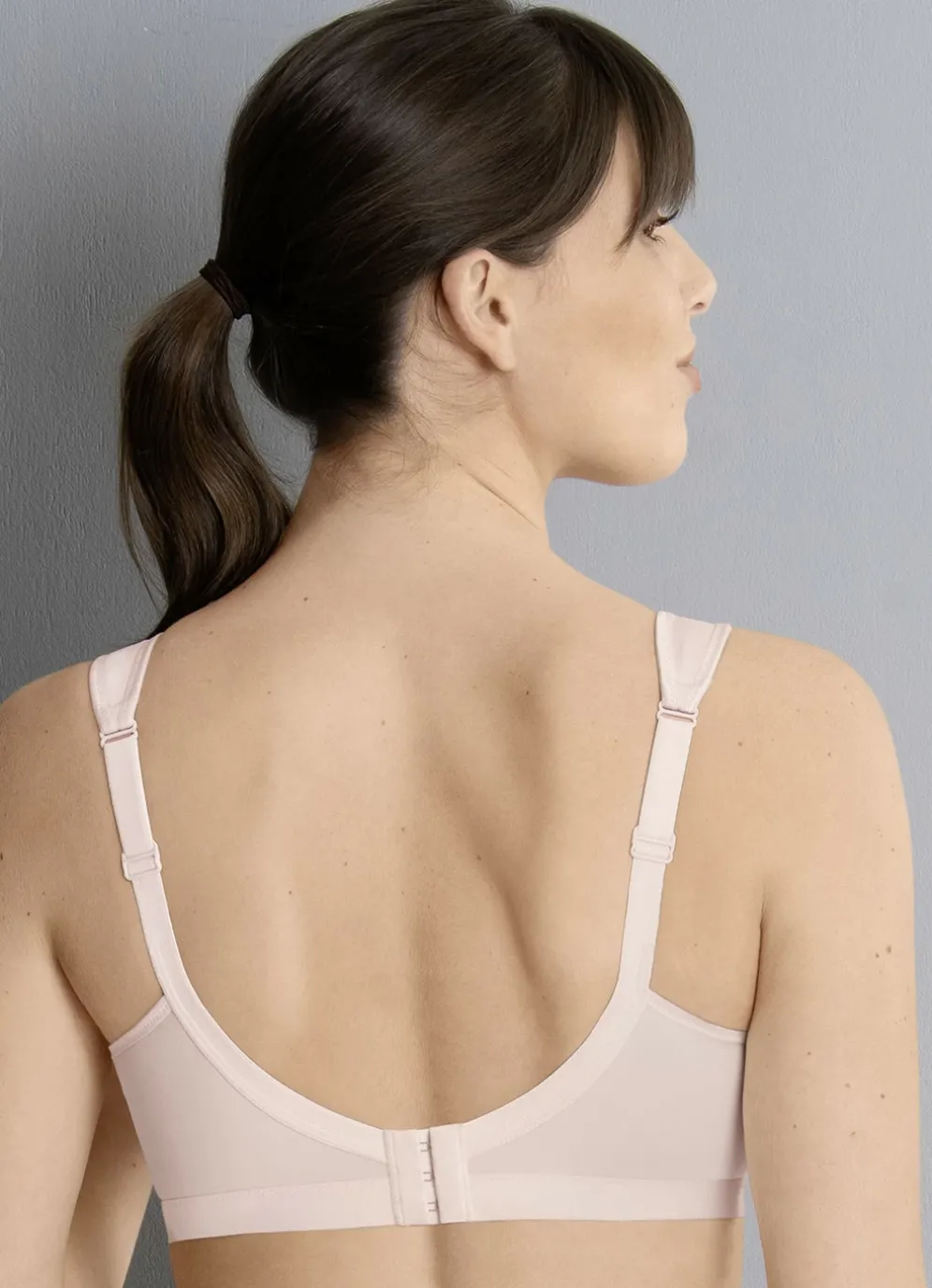 „Anita“-Sport-BH in Zartapricot, aus atmungsaktivem Material, mit vorgeformten Cups, weichem Unterbrustband sowie verstellbaren, elastischen Komfortträgern.