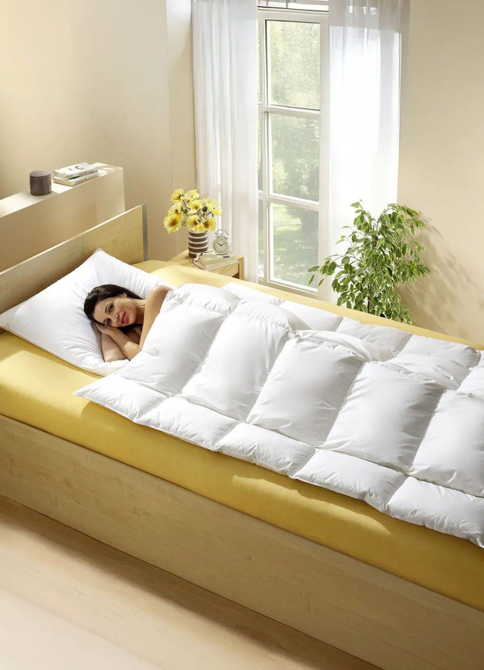 Durch diese Körperform-Daunendecke werden Sie optimal zugedeckt. Die Innenstege ermöglichen der kuschelig weichen Füllung beste Entfaltung und Wärmespeicherung. Die Daunenfüllung wirkt wie eine natürliche Klimaanlage, dadurch wird überschüssige Wärme schnell abgegeben. Durch diese optimalen Eigenschaften müssen Sie weder schwitzen noch frieren.