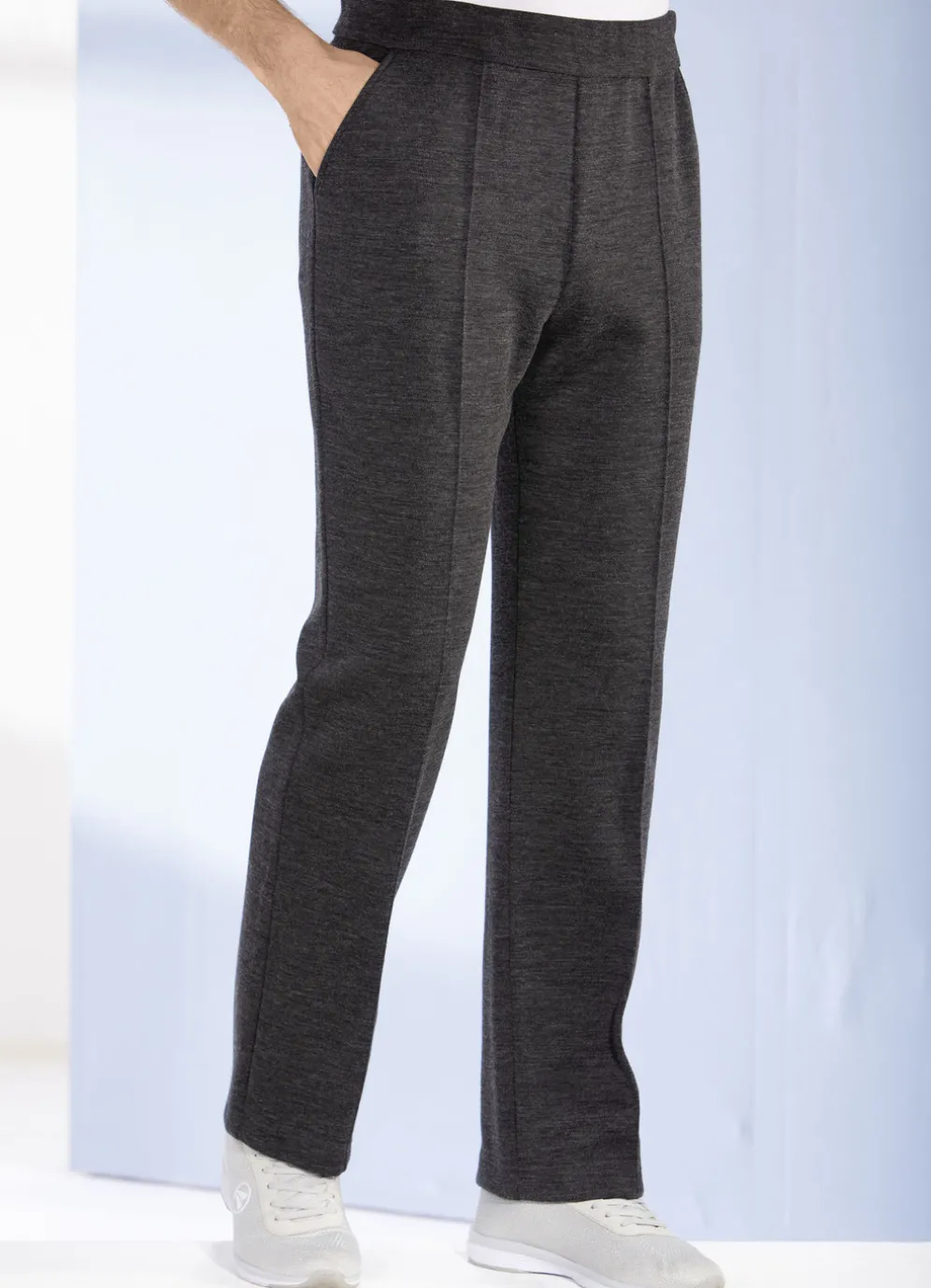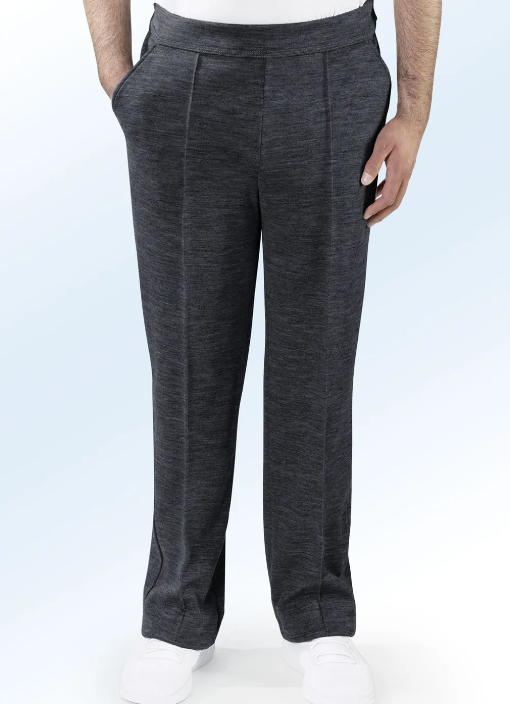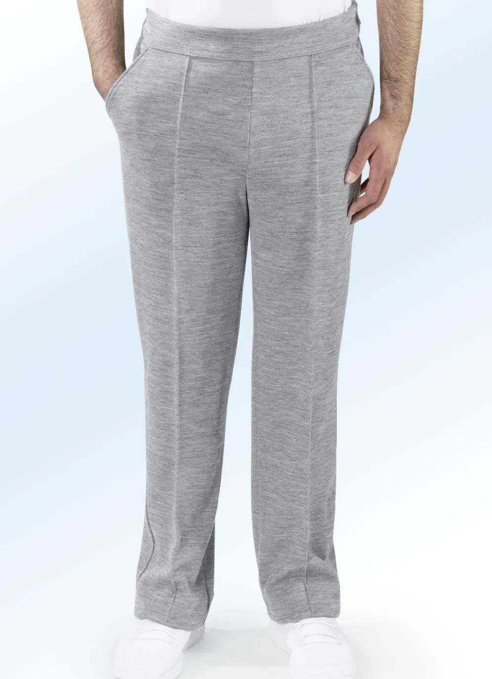 „Athlet“-Kurhose für Herren: Dehnbund, Seitentaschen, Biesennaht sowie eine Gesäßtasche mit Reißverschluss rechts.