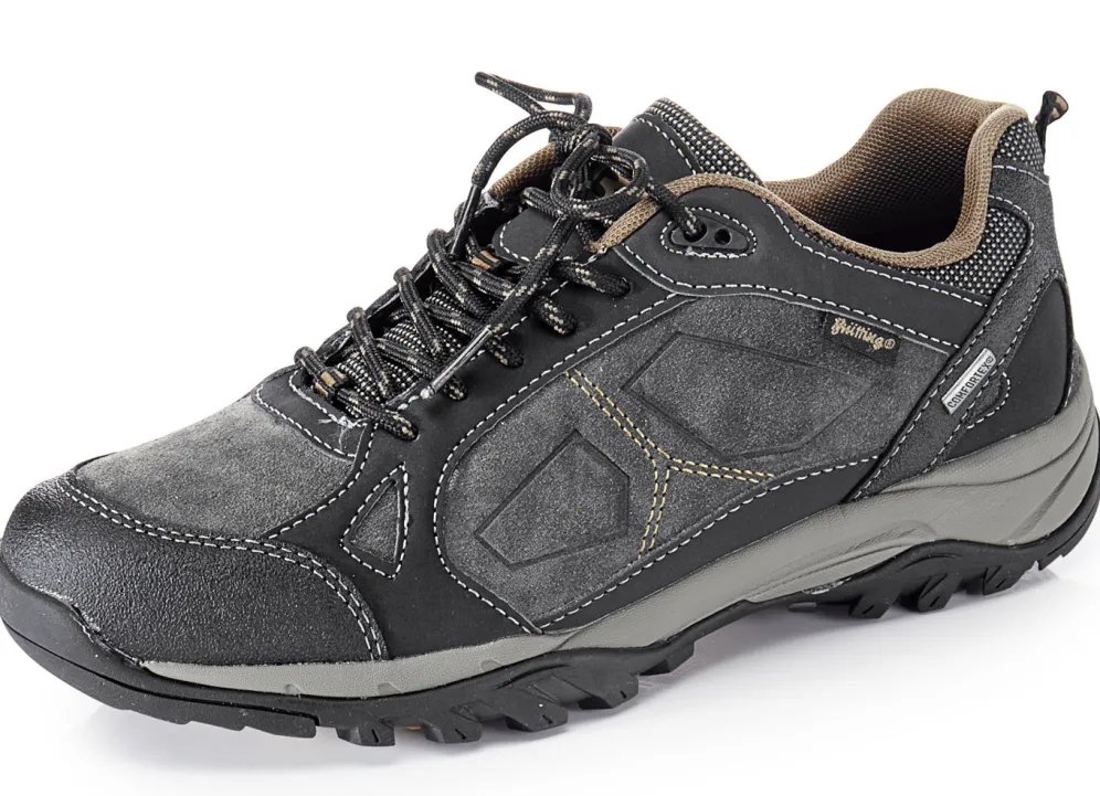 Wetterfeste Schnürschuhe in Grau-Schwarz-Cognac, aus Veloursleder mit Synthetik- und Textil-Einsätzen: mit Klimamembrane ausgestattet. Textilfutter, herausnehmbares Fußbett sowie superleichte CME-Profilsohle