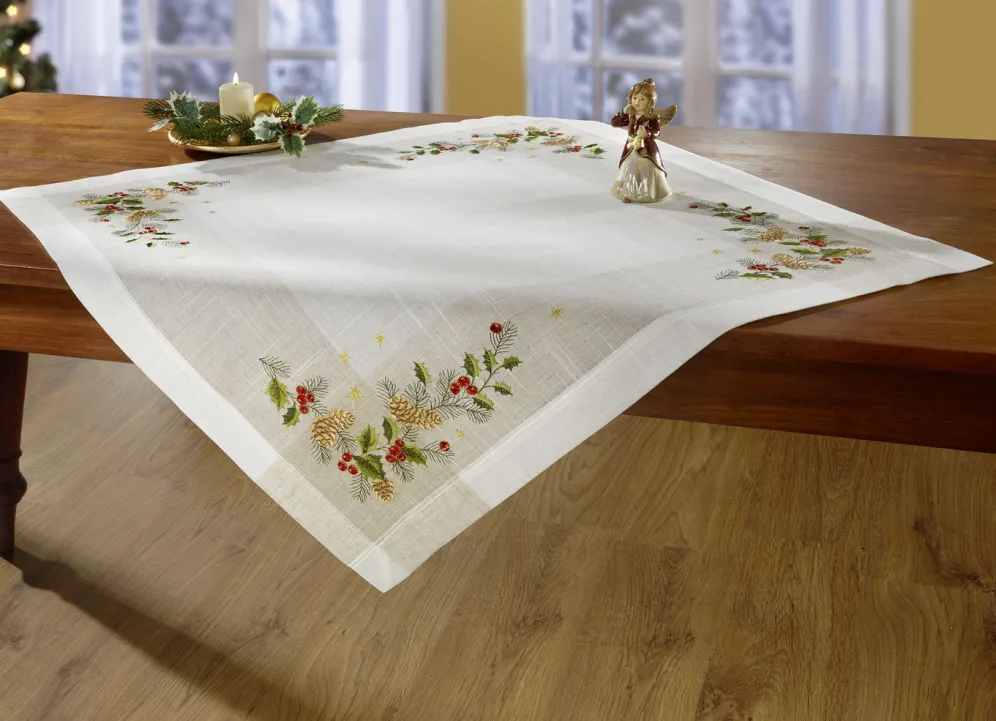 Aufwendig bestickte Tischdecke oder Kissenbezug in Größe 300 (2 Deckchen, 35x 35 cm) und in Sekt-Bunt.