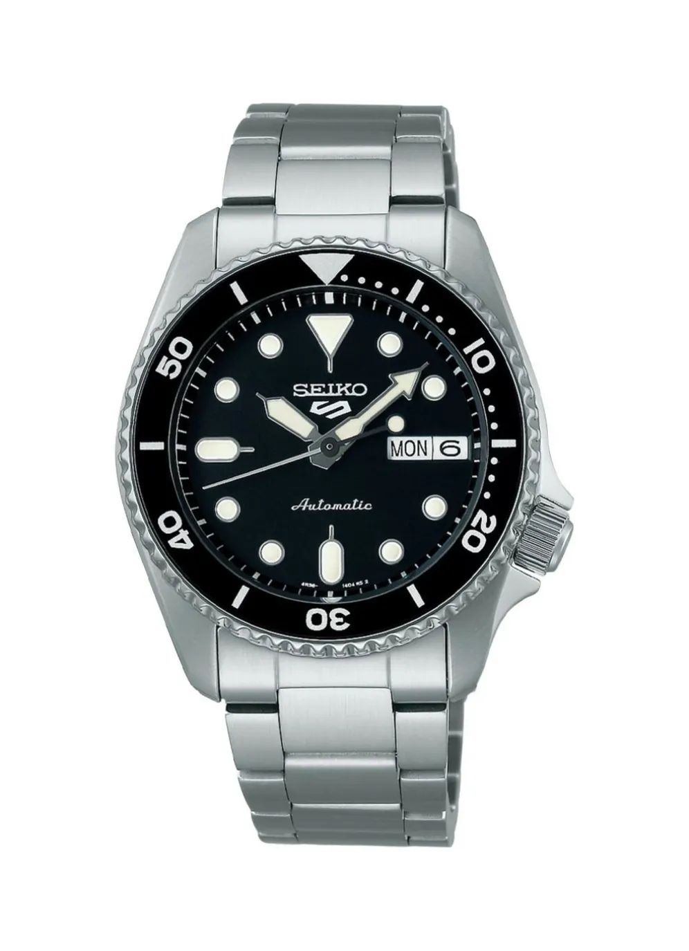Diese sportliche Automatik-Herrenuhr ist aus der Serie 5 Sports. Sie hat ein Edelstahlbandgehäuse und ein Hardlexglas. Das Armband wird durch eine Faltschließe mit Sicherheitsbügel und -drücker verschlossen. Die Herrenuhr verfügt über einen Kalender, eine einseitig drehbare Lünette, eine Gangreserve von ca. 41 Stunden, eine Handaufzugsmöglichkeit, einen beideitigen automatischen Aufzug und einen Sekundenstopp.