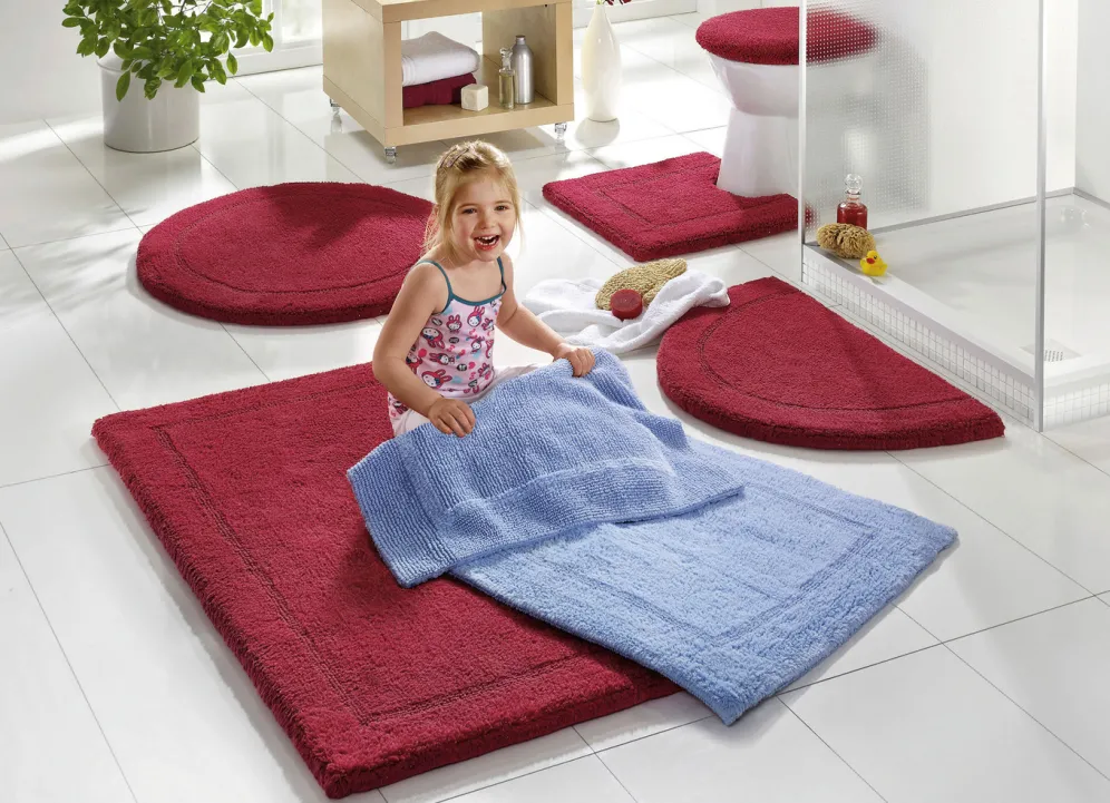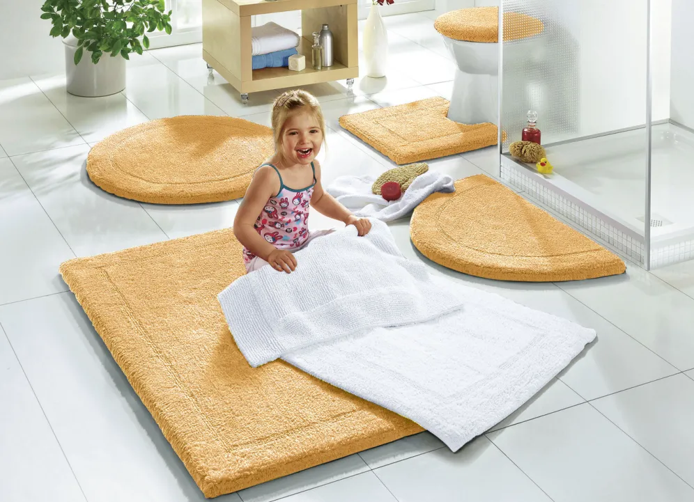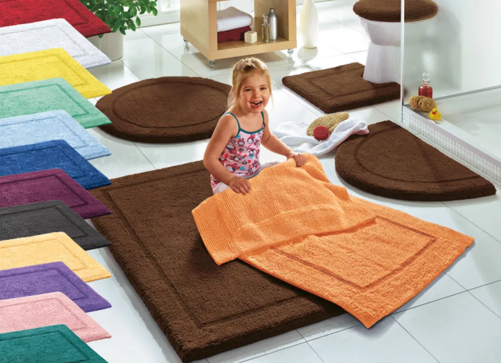 Lassen Sie Ihre Füße von der natürlich weichen Qualität dieser Bad-Wendegarnitur umschmeicheln. Die extra schwere Baumwollqualität liegt sicher am Boden und ist beidseitig verwendbar.