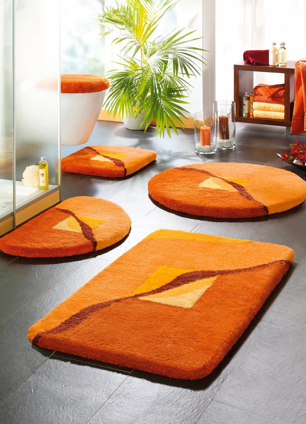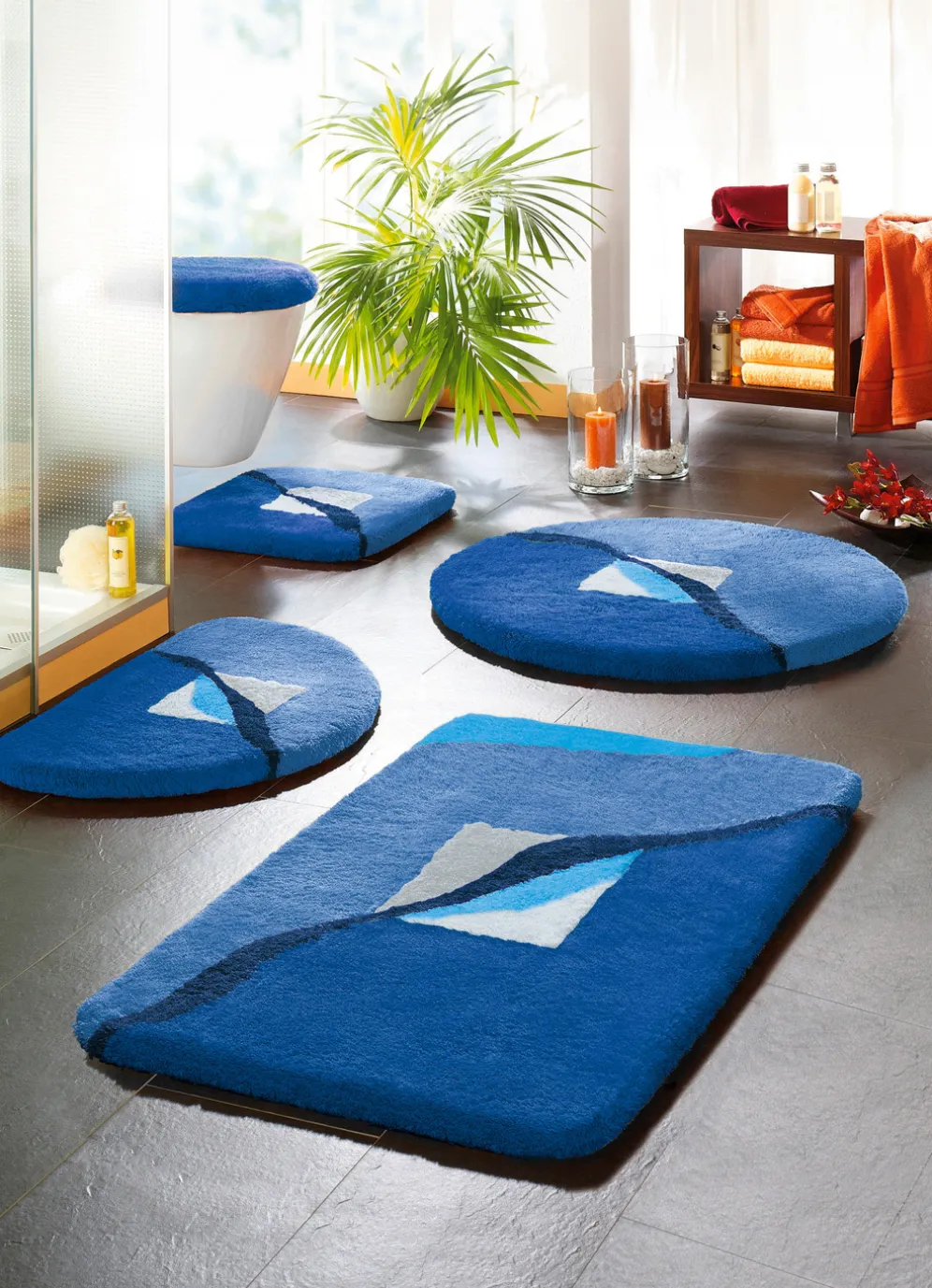 | Size | 100 (Vorleger halbrund, 50/ 80 cm), 101 (Teppich, 50/ 90 cm), 102 (Teppich, 60/100 cm), 103 (Teppich, 70/120 cm), 105 (Teppich, Ø 90 cm), 108 (Stand-WC-Vorleger, 55/ 50 cm), 109 (Hänge-WC-Vorleger, 55/50 cm), 112 (WC-Deckelbezug mit Kordel) |