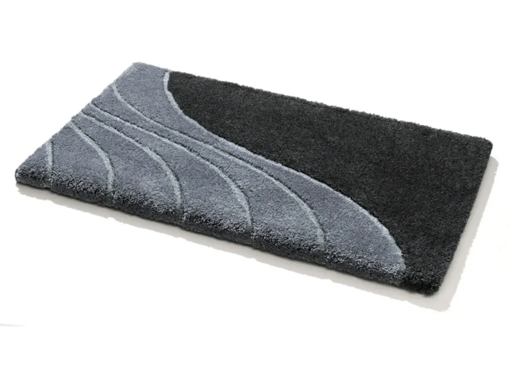 Badgarnitur mit Hoch-Tief-Effekt in Größe 104 (Teppich, 70/120 cm) und in Grau.