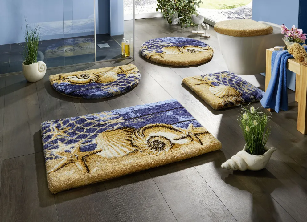 Diese maritime Badgarnitur von „Grund“ macht Lust auf Meer! Mit schönen Muschel- und Seesternmotiven gestaltet, verbreitet sie besonderes Flair in Ihrem Bad. Höhe: 20 mm. Mit rutschhemmender, latexierter Rückseite. Qualität: CT-Tufting aus 100% Polyacryl „Supersoft“. Waschbar bis 40 °C. Für Trockner und Fußbodenheizung geeignet.