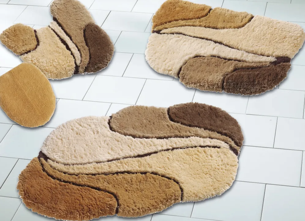 | Size | 100 (Vorleger halbrund, 50/ 80 cm), 101 (Teppich, 50/ 90 cm), 102 (Teppich, 60/100 cm), 103 (Teppich, 70/120 cm), 105 (Teppich rund, ø 80cm), 108 (Stand-WC-Vorleger, 50/ 50 cm), 110 (Hänge-WC-Vorleger, 50/ 50 cm), 112 (WC-Deckelbezug mit Kordel) |