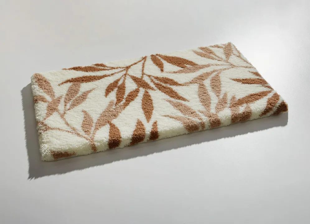 Mit ihrem natürlichen Blätterdessin ist diese barfußweiche Badgarnitur von Grund ein schöner Blickfang in Ihrem Badezimmer. Höhe: 20 mm. Mit rutschhemmender, latexierter Rückseite. Die Qualität: CT-Tufting aus 100% Polyacryl Supersoft. Waschbar bis 40 °C. Für Trockner und Fußbodenheizung geeignet