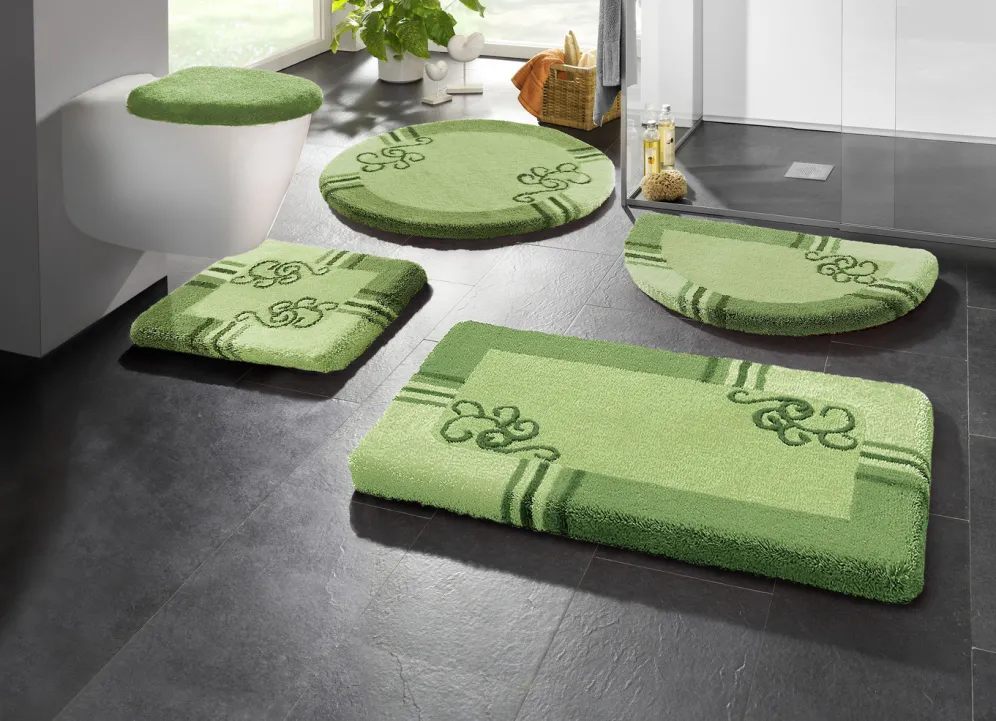 | Size | 100 (Vorleger halbrund, 50/ 80 cm), 101 (Teppich, 50/ 90 cm), 102 (Teppich, 60/100 cm), 103 (Teppich, 70/120 cm), 106 (Teppich rund, ø 90 cm), 108 (Hänge-WC-Vorl., 55/ 50 cm), 110 (Stand-WC-Vorl., 55/ 50 cm), 112 (Deckelbezug mit Kordel, 47/ 50 cm) |