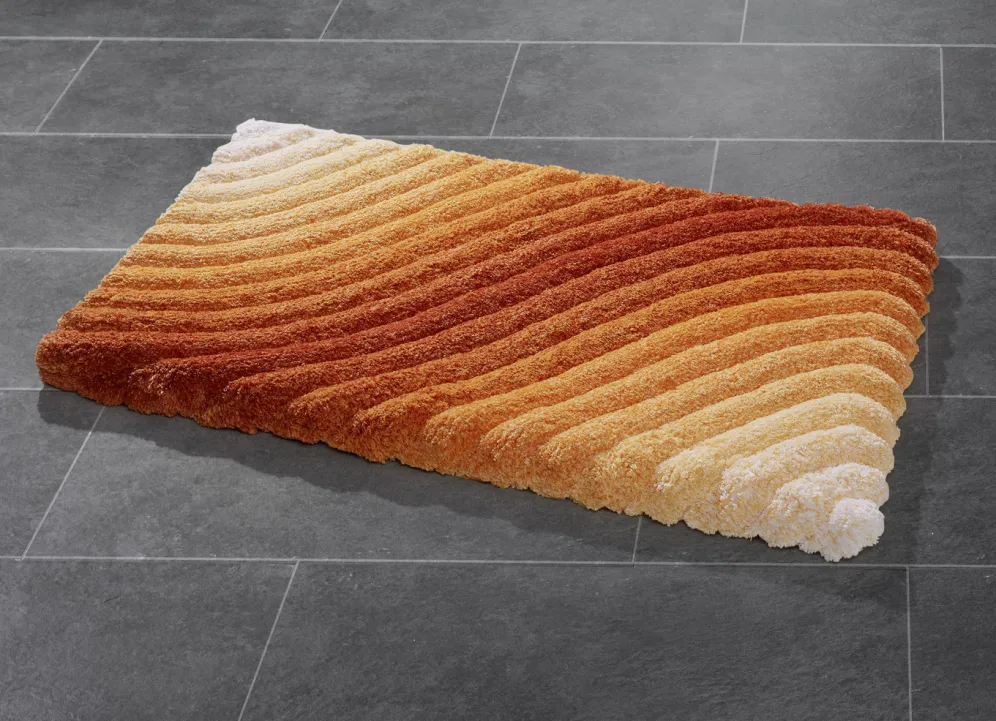 Der wunderschöne Farbverlauf auf dieser barfußweichen Badgarnitur wird zum Hingucker in Ihrer Wohlfühloase. Mit rutschhemmend latexierter Rückseite: Höhe: ca. 25 mm. Die pflegeleichte, flusenfreie Qualität: Table Tuft aus 100% Premium-Polyester „Supersoft“. Waschbar bis 30 °C. Für Trockner und Fußbodenheizung geeignet.
