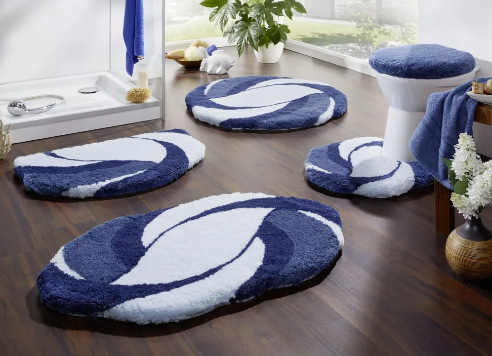 Barfußweiche Badvorleger von Kleine Wolke in Größe 112 (WC-Deckelbezug, 47/ 50 cm) und in Blau.