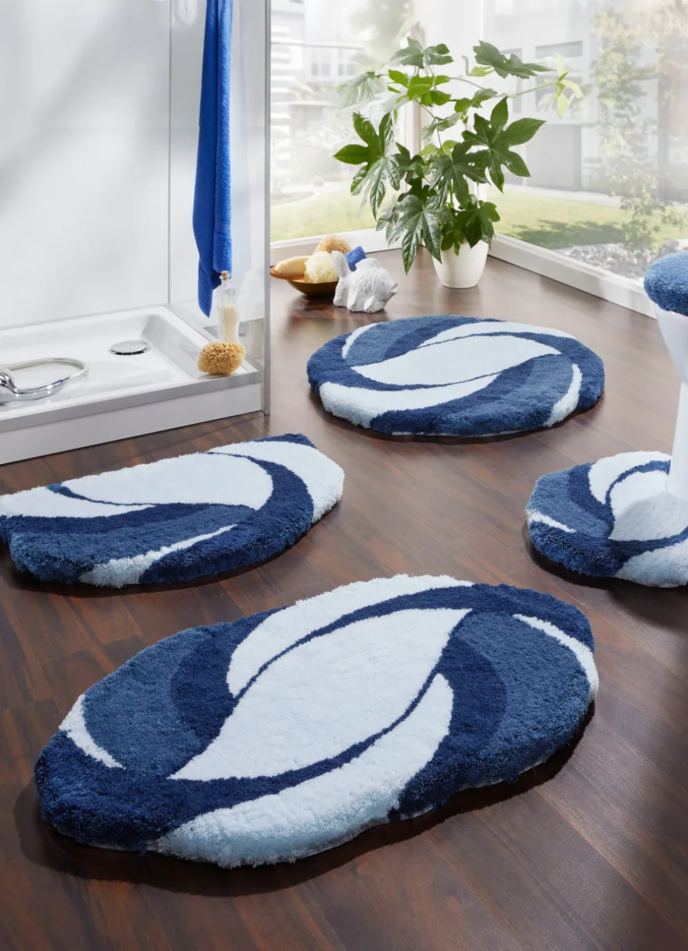 | Size | 100 (Vorleger halbrund, 50/ 80 cm), 101 (Teppich, 50/ 90 cm), 102 (Teppich, 60/100 cm), 103 (Teppich, 70/120 cm), 104 (Teppich rund, Ø 90 cm), 108 (Stand-WC-Vorleger, 50/ 55 cm), 109 (Hänge-WC-Vorleger, 50/ 55 cm), 112 (WC-Deckelbezug, 47/ 50 cm) |