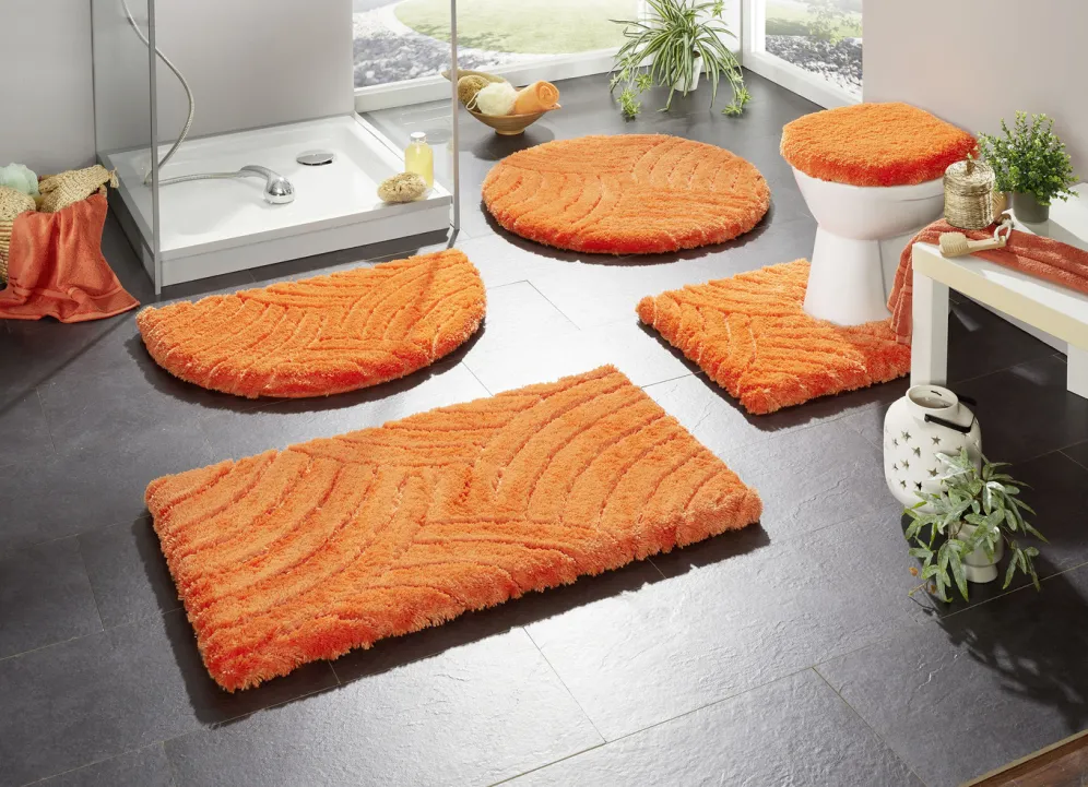 | Size | 100 (Vorleger halbrund, 50/ 80 cm), 101 (Teppich, 50/ 80 cm), 102 (Teppich, 60/100 cm), 104 (Teppich, 70/120 cm), 105 (Teppich, 80/140 cm), 106 (Teppich rund, ø 80 cm), 108 (Stand-WC-Vorleger, 50/ 50 cm), 109 (Hänge-WC-Vorleger, 50/ 50 cm) |