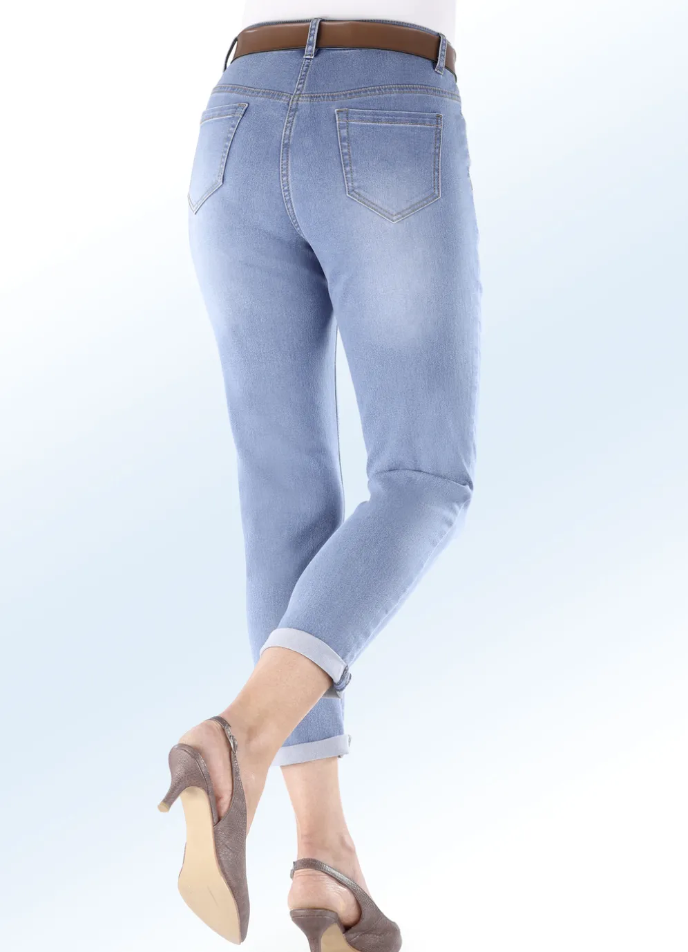 Anziehen und wohlfühlen! Mit dieser 7/8-langen Basic-Jeans sind Sie stets perfekt gekleidet: 5-Pocket-Form, elastischer Bund, Gürtelschlaufen, Knopf- und Reißverschluss, Ziernieten an den vorderen Taschen, Jeanssattel, kontrastfarbene Absteppungen allover, dezente Used-Effekte vorne und hinten sowie seitliche Schlitze an den Beinabschlüssen.Die aktuellen Waschungen garantieren eine tolle Optik!