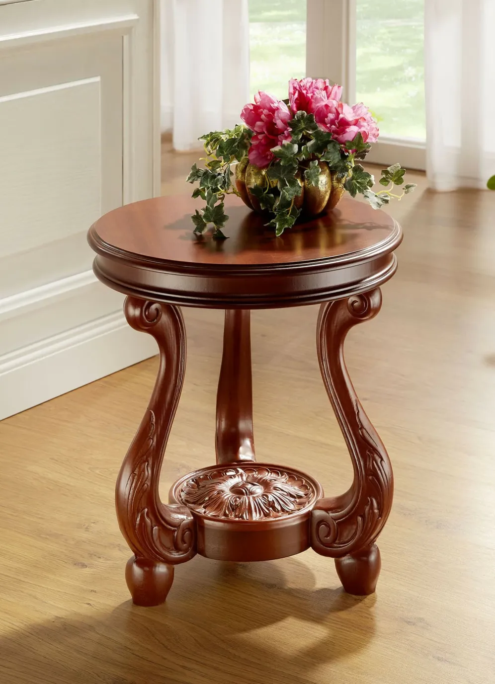 Beistelltisch aus Buchenholz mit reichhaltiger Schnitzerei