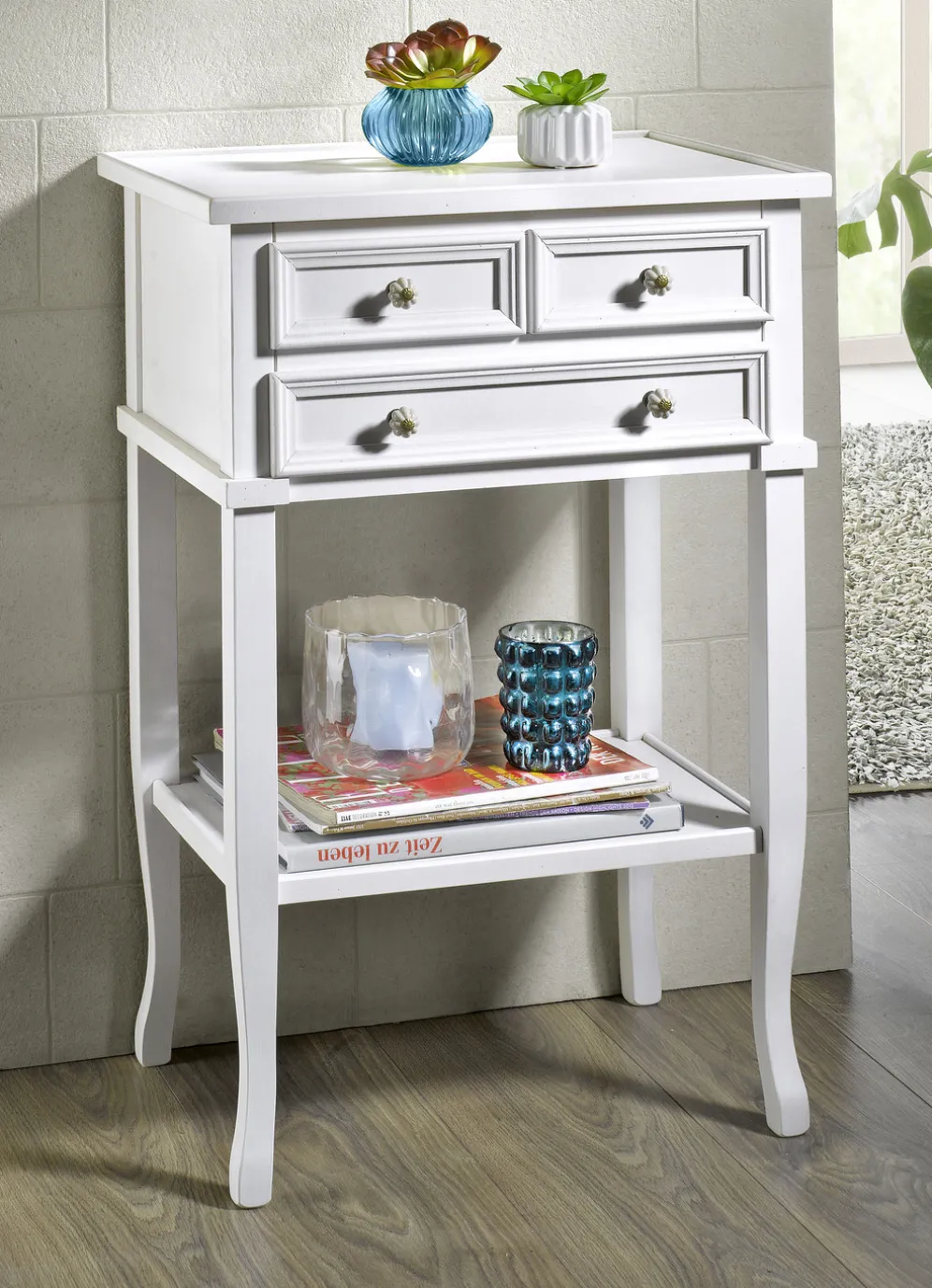 Beistelltisch mit Schubladen und Metallgriffen in Weiss.