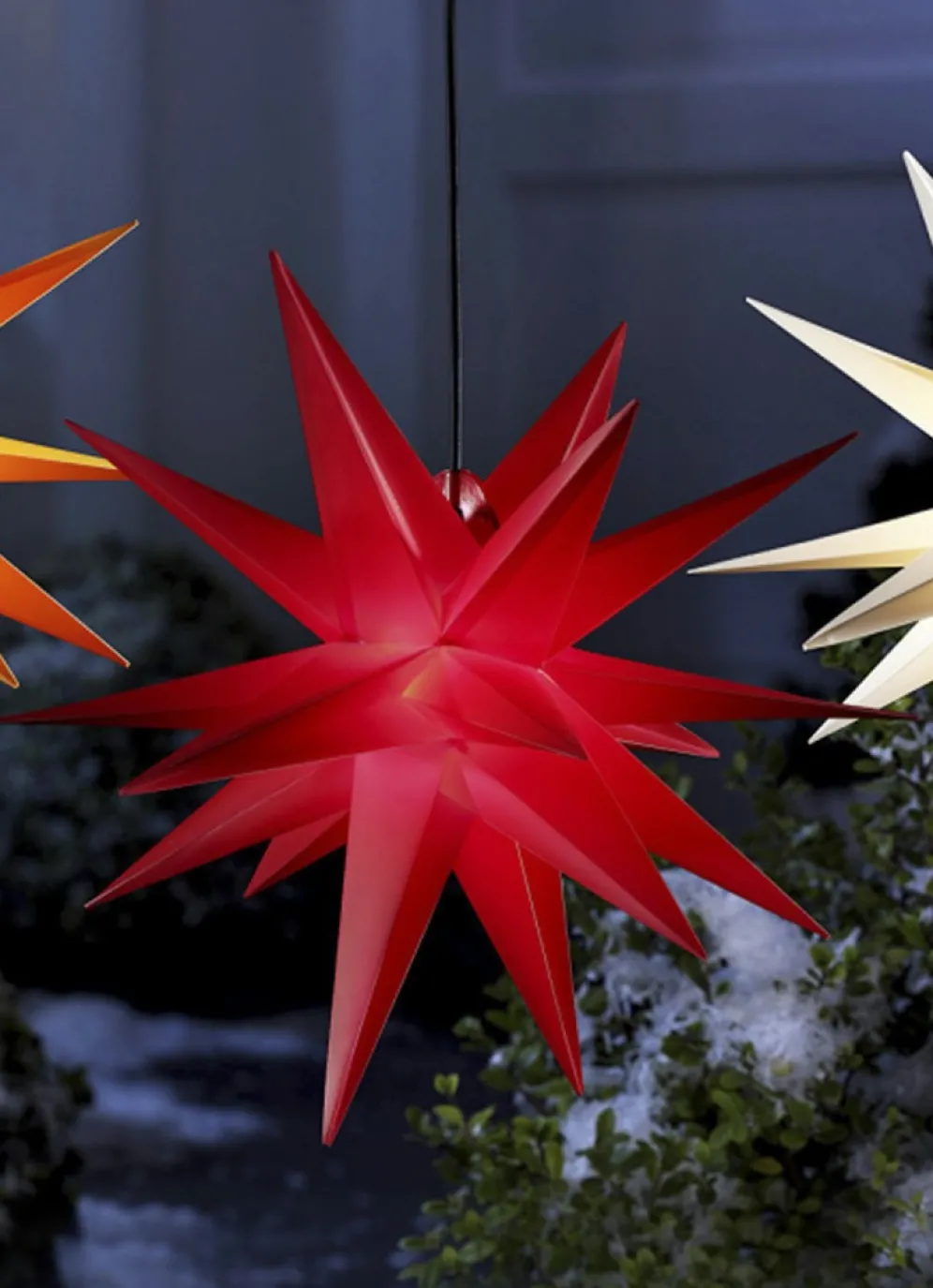 Der beleuchtete Weihnachtsstern aus festem Kunststoff ist ein winterlicher Blickfang. Ganz einfach wird er durch Aufklappen in seine imposante Form gebracht.