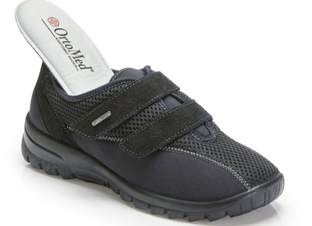 Bequeme Damen-Klettschuhe, Weite H, mit herausnehmbarem Fußbett in Schwarz und in Größe 41.