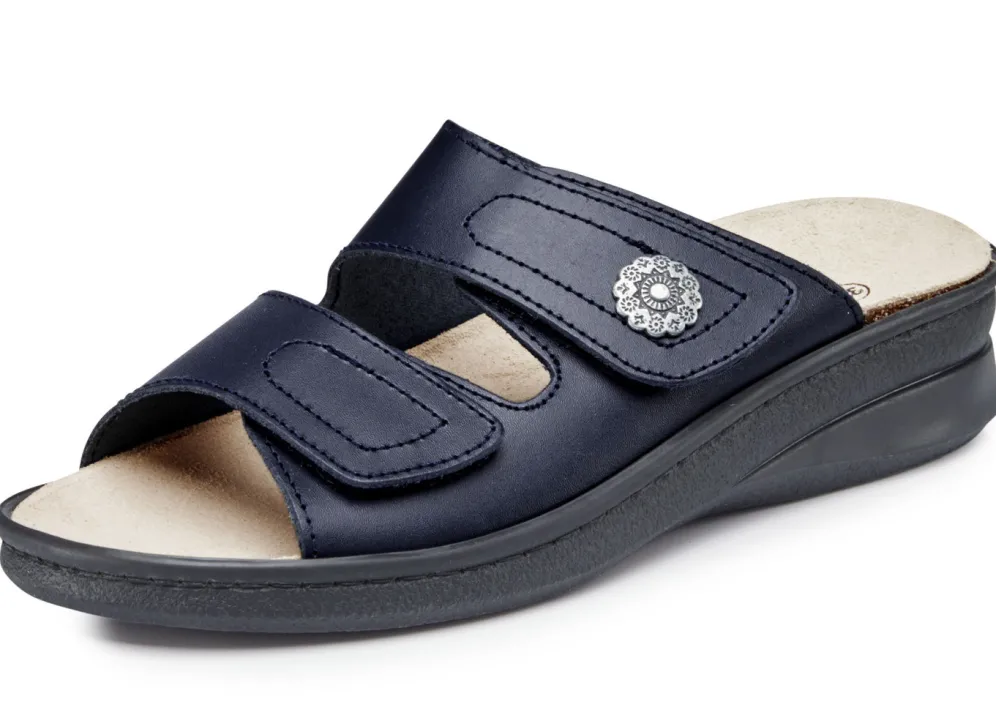 Bequeme Damen-Pantoletten, mit herausnehmbarem Fußbett in Dunkelblau und in Größe 42.