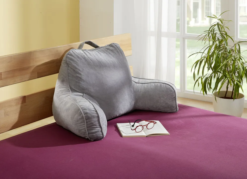 Mit Hilfe des Bettsessels können Sie entspannt auf dem Bett, Sofa, Sessel und sogar auf dem Boden sitzen. Aufgrund der komfortablen Polsterung am Rücken und den beiden Seitenstützen sorgt das Kissen für den perfekten Halt. Mit praktischem Tragegriff.