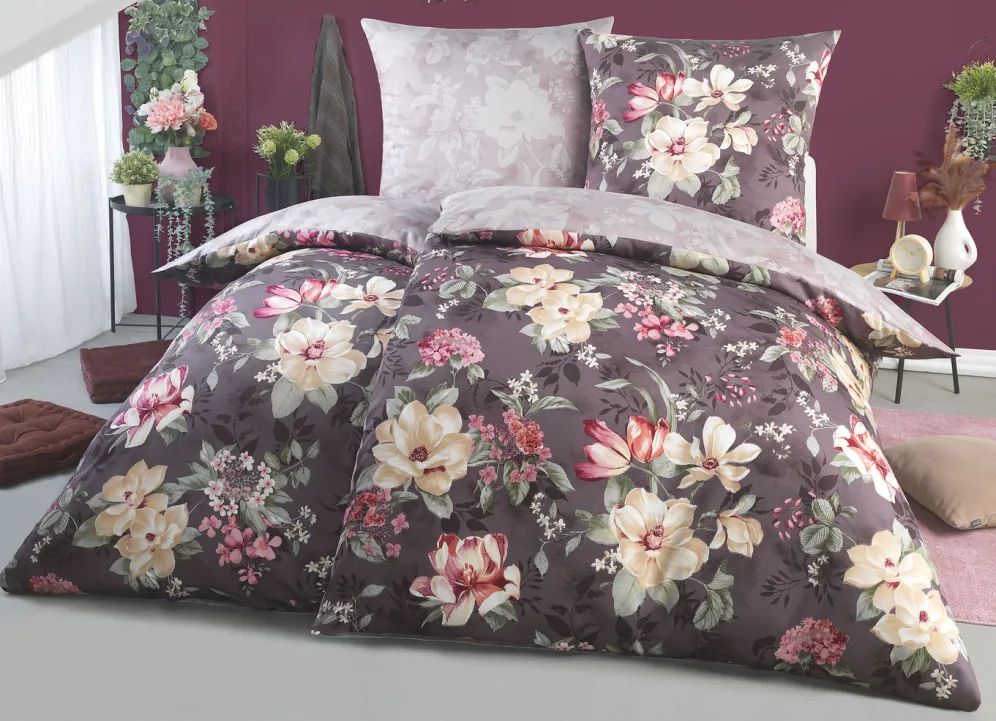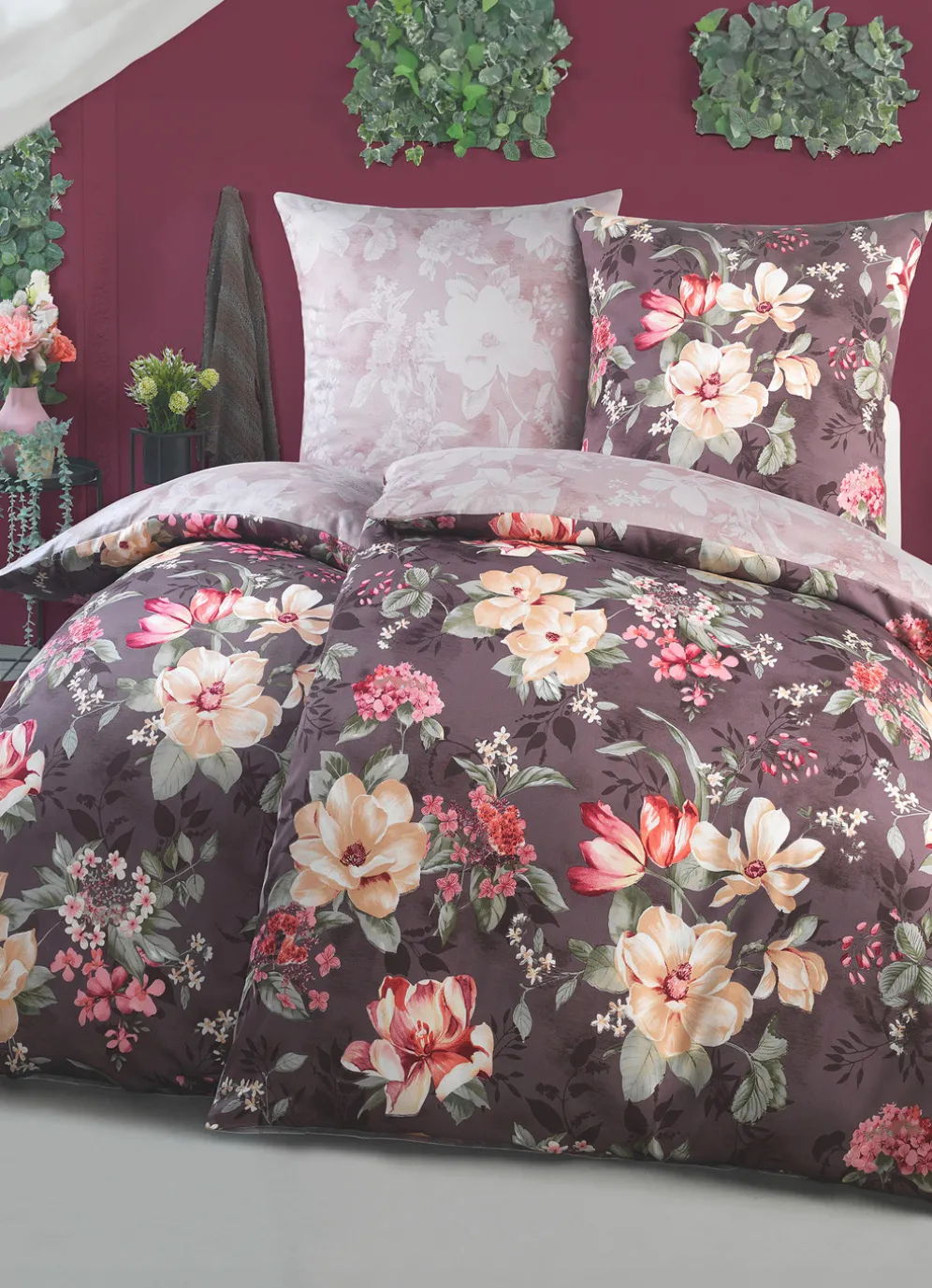 Bettwäsche-Garnitur mit opulentem Blüten-Dessin