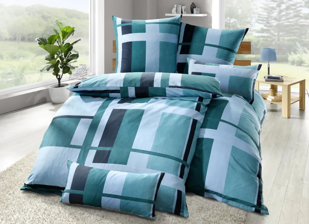 Bettwäsche-Garnitur in Größe 111 (40/80 cm + 135/200 cm) und in Petrol.