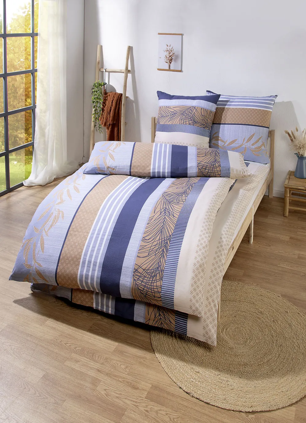 Bettwäsche-Garnitur in Größe 112 (80×80 cm + 135×200 cm) und in Blau.