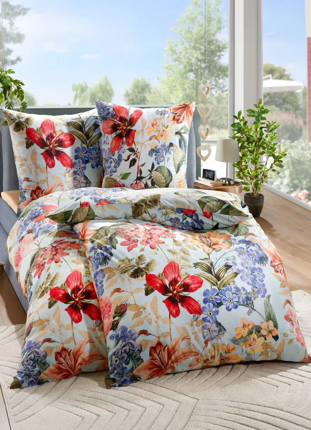 Ein opulentes Blütenmotiv ziert diese beidseitig bedruckte Bettwäsche-Garnitur von „Bierbaum“. Mit praktischem Reißverschluss. Qualität: Mako-Satin aus 100% Baumwolle. Waschbar bis 60 °C und trocknergeeignet