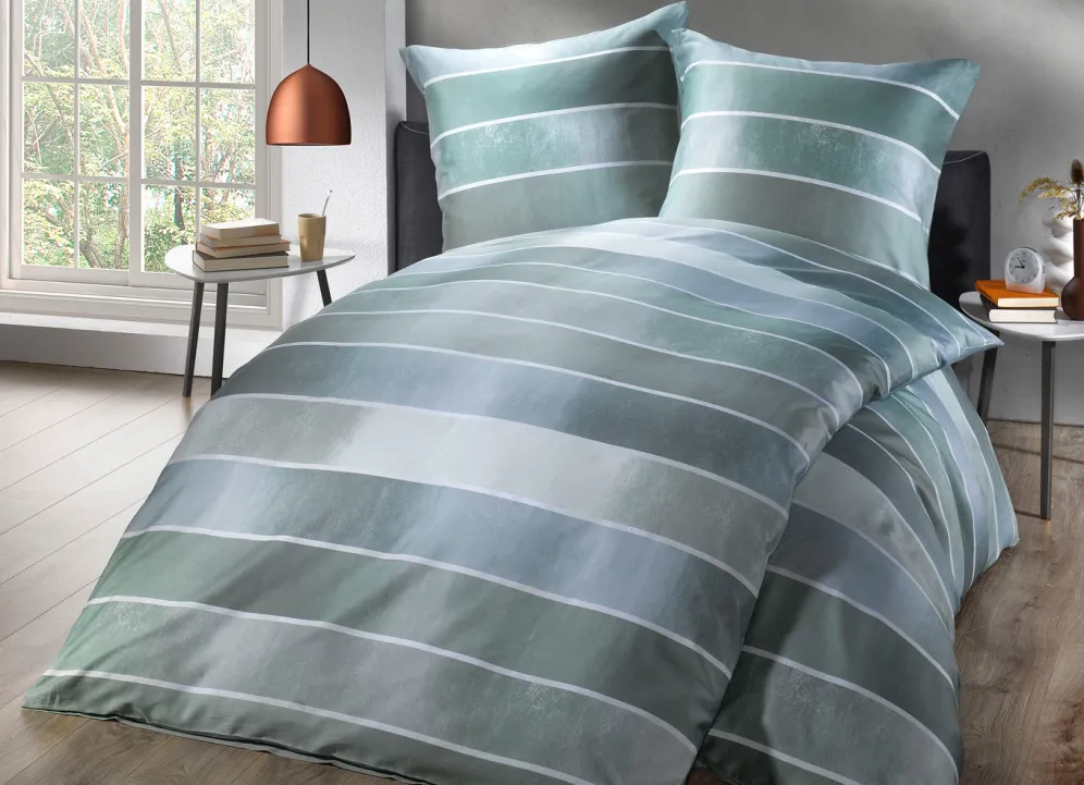 Bettwäsche-Garnitur mit Blockstreifen-Dessin