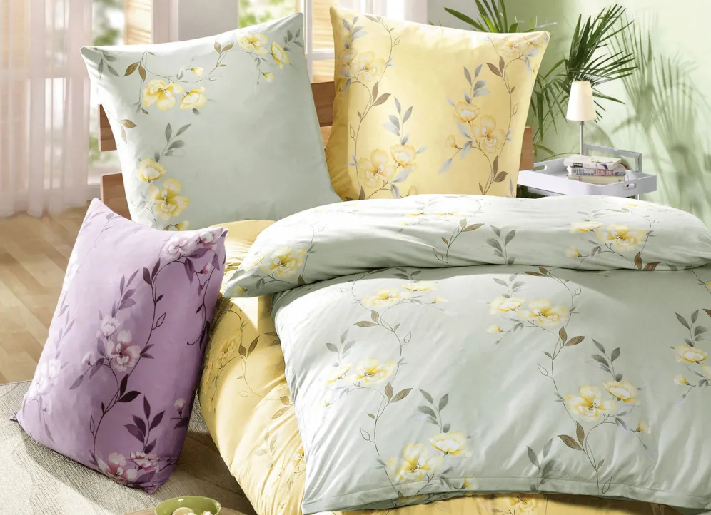 Feine Blumen ranken sich über diese Bettwäsche-Garnitur von „Irisette“. In 2 Qualitäten jeweils aus 100% Baumwolle, mit praktischem Reißverschluss. Waschbar bis 60 ºC, trocknergeeignet.