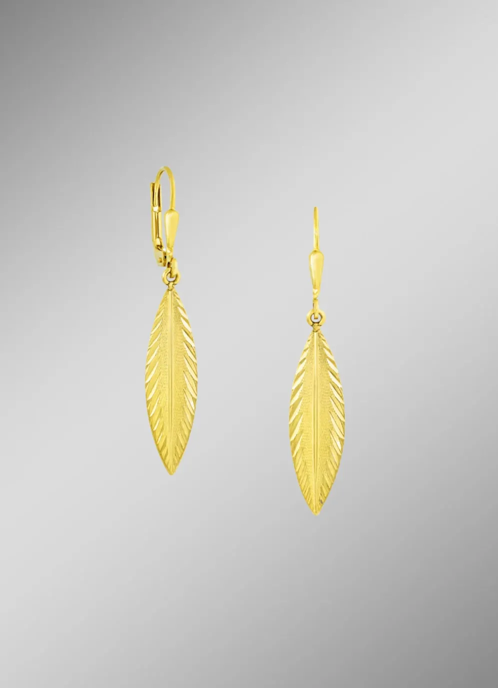 Bewegliche Ohrringe im Blätter-Design in der Legierung Gold 585/- fein.
