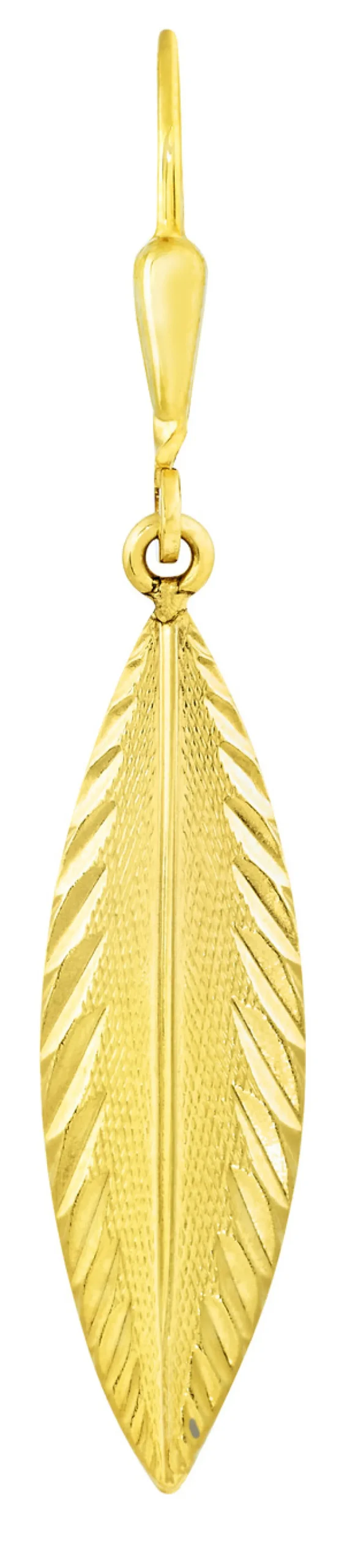 Ideenreich im Design und anspruchsvoll in der Verarbeitung – dafür stehen diese faszinierenden Gold-Ohrringe mit blitzender Diamantierung auf dem Pendel in verspielter Blätter-Optik. Der hochwertige Ohrschmuck in Gelbgold 585/- fein oder Gold 333/- fein überzeugt auf der ganzen Linie.