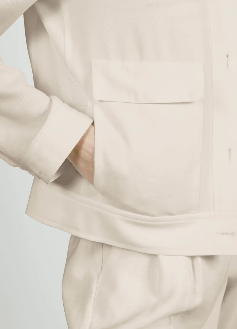 Blazer in Leinen-Optik in Sand und in Größe 40.