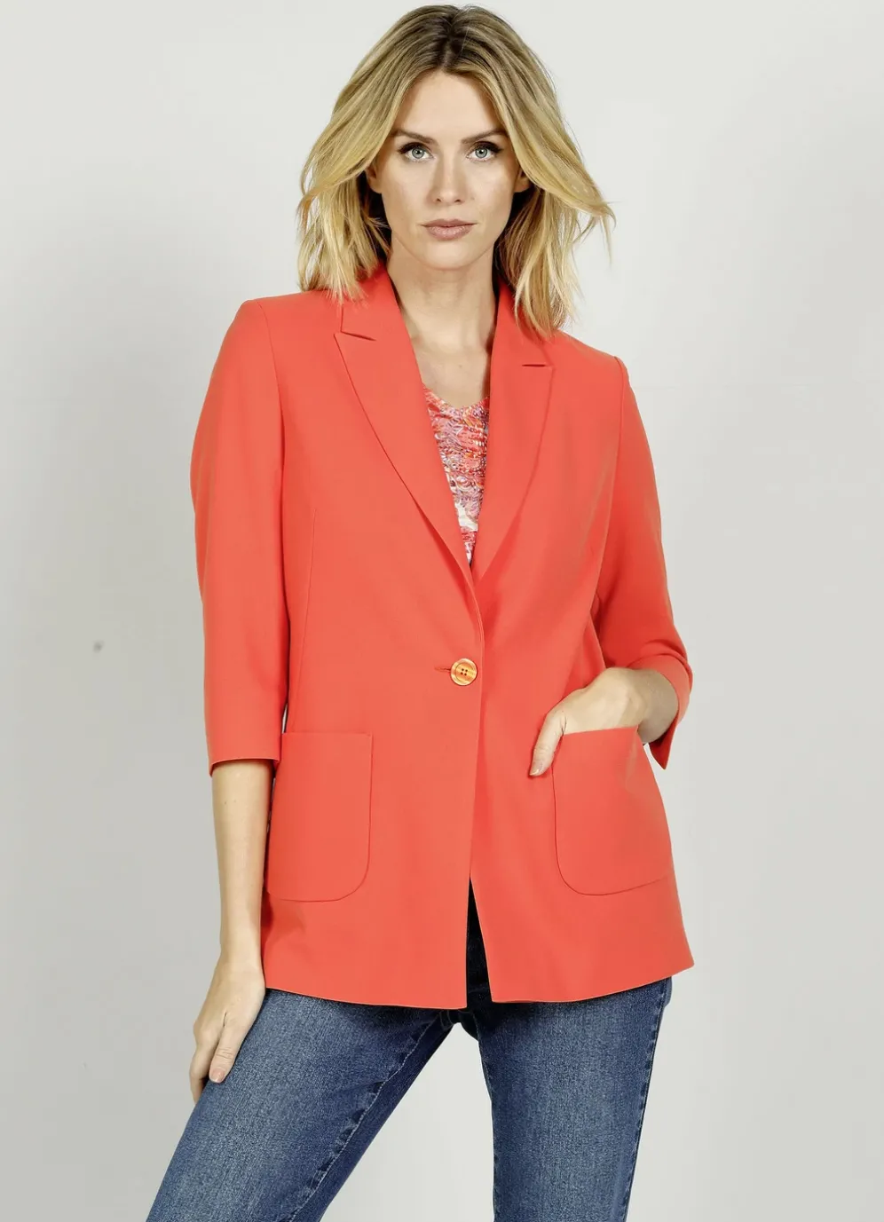 Blazer mit geschlitztem 3/4 Arm in Koralle und in Größe 44.