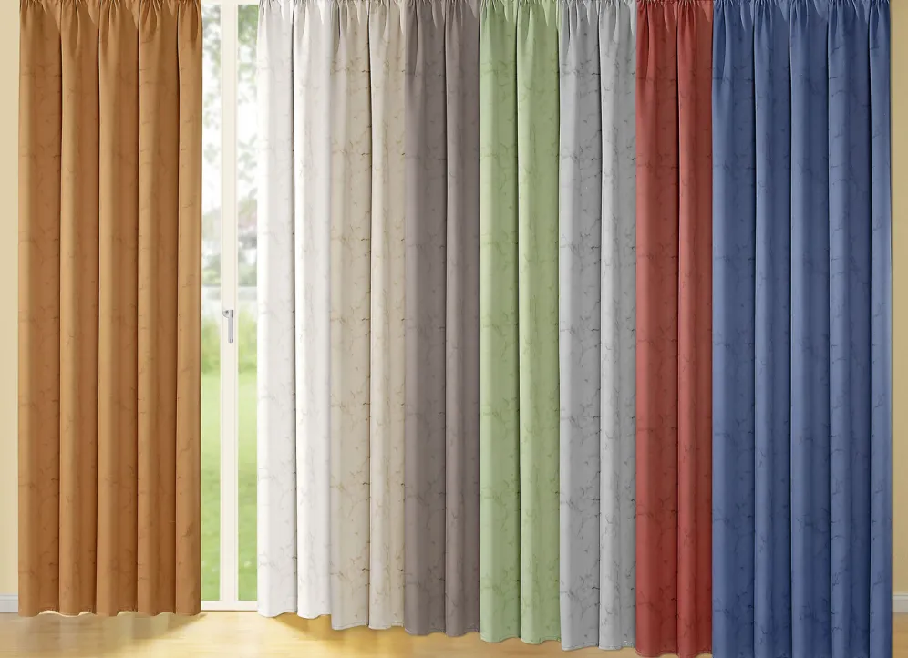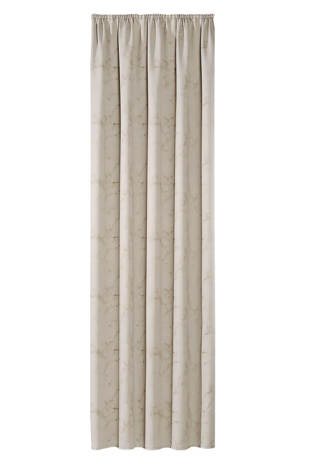 In wohnlichen Farben präsentiert sich dieser hochwertig verarbeitete, marmorierte Verdunkelungsschal. Mit Kräuselband. Die blickdichte Qualität: 100% Polyester, transferbedruckt